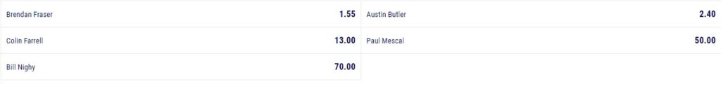 El favorito para ganar el Oscar al mejor actor es Brendan Fraser, quien realizó magistralmente el papel principal en la película The Whale. Su primer competidor es Austin Butler, quien actuó en Elvis, mientras que al resto de los tres no se les otorgan muchas posibilidades de ganar la estatuilla dorada.