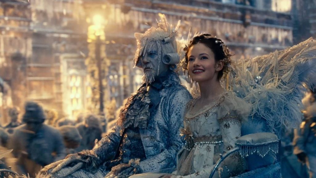 El guion es, ufff, no sé qué decirte. Los diálogos en sí no son nada del otro mundo. La historia podría haber tenido más sentido si hubieran intentado venderla como algo nuevo; es cierto que hay un montón de similitudes con otras películas de temática similar, pero ¿quién en Hollywood no roba hoy en día? Pero decir que vas a hacer una película basada en el Cascanueces con tantos cambios y errores innecesarios, eso es un pecado. En cuanto a esas similitudes mencionadas, el paso de Clara al mundo mágico es más o menos el mismo que en, adivinaron, Las Crónicas de Narnia, y hasta noté una referencia a Harry Potter. Ese mundo mágico, aunque visualmente impresionante, me pareció demasiado copiado del Mundo Encantado de la serie Once Upon a Time. Asimismo, el enfrentamiento final con el villano y el final podrían haber sido un poco más dinámicos e inesperados, pero tampoco voy a exagerar, no es la Batalla por la Tierra Media.